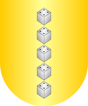 7.- Otros: En campo de oro, cinco luneles, de azur, puestos en aspa.