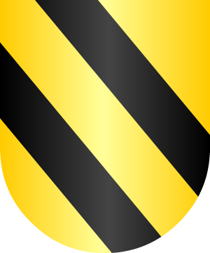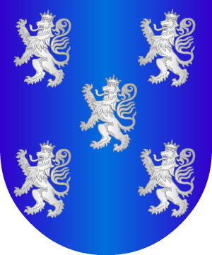 En campo de plata, un árbol, de sinople, adiestrado de una escala, de gules.