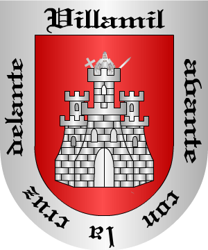 El Palacio de Espinel en Navarra, fue solar de buenos hijosdalgo. Otra familia hubo en Galicia. Jorge de Montemayor dice que este linaje tuvo también casa en el lugar de Espino, pero sin indicar cuál de los pueblos del mismo nombre que hay en España. Gómez Espinel fue esposo de Teresa Andrés de Paradiña. En Castilla tuvo casas solares en Tordehumos y Villabrágima (Valladolid), documentada en el siglo XVI. Pasaron a Argentina, Colombia, Ecuador, Estados Unidos, México, Perú y Puerto Rico. Indalecio Braulio Espinel de la Portaza, vecino de Luna (Zaragoza), ganó proceso de infanzonía ante la Real Audiencia de Aragón, sin fecha. Armas 1.- En campo de oro, un espino arrancado de sinople, con las raíces de gules de tres gajos y frutado de gules, y al pie un lobo de azur, pasante, armado y lampasado de gules. 2.- Los de Galicia usan: En campo de oro, un pino, de sinople, y al pie de éste, un lebrel, de plata, con manchas de sable, mirando a lo alto. 3.- Otros: En campo de plata, tres flores de lis, de azur, mal ordenadas. 4.- Otros: En campo de plata, una villa, de oro. Complemento de información de estos linajes por cortesía de blasonari.net |