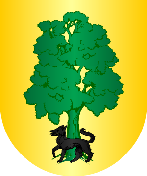 38.- Otros: En campo de plata, dos árboles, de sinople, con un lobo, de sable alzado a cada uno de ellos.