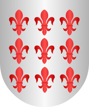 2.- Juan Antonio de Esteve, burgués de Figueras (Girona) y oriundo de Eroles (Lleida), usaba: En campo de plata, nueve flores de lis, de gules, puestas en tres palos.