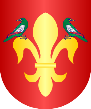 22.- Otros: Una flor de lis y ambos lados sumados de dos pájaros, afrontados y con las cabezas contornadas.