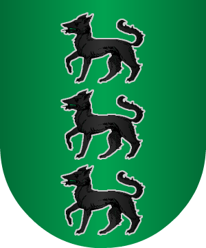 20.- Los Estévez, de Castilla, según Vicente de Cadenas, traen: En campo de oro, un jabalí, de sable atacado por tres lebreles, de su color que lo muerden.