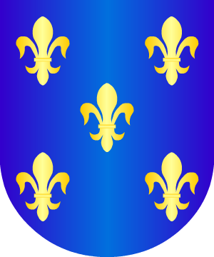 de plata, con un león rampante de su color. Bordura de oro, con diez