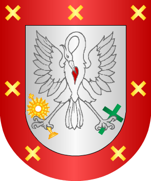 Vasco: En campo de oro, un castaño de sinople, sumado de un pelicano (garza) picandose el pecho y acompañado de dos veneras de azur; al pie del tronco, dos lobos, de sable; el de la derecha empinado y el otro andante. Bordura de gules con ocho aspas de oro. (Ref.: AMOGROBEJO). |