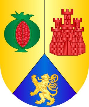 Linaje vasco. De Éibar (Guipúzcoa). Armas Mantelado, 1º de oro, una granada de sinople; 2º de oro, un castillo de gules; y mantel de azur, un león rampante de oro. |