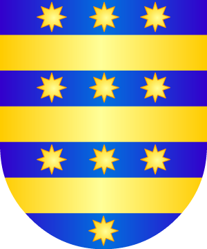 Arguindegui Harguindegui Harguindegy Harguindey Originario de la localidad de Iholdy en el departamento de los Pirineos Atlánticos (Francia) desde donde pasó a Guipúzcoa a comienzos del siglo IXX, en las personas de tres hermanos apellidados Argindegi del que se derivó Harguindeguy, españolizándose su grafía en Harguindey, Harguindegui o Arguindegui. Según el tratadista Vicente de Cárdenas, los Harguindey, que radicaron en Madrid, portan como Armas 1.- En campo de oro, sembrado de flores de lis, de azur. 2.- Los Arguindegui, más comunes con esta grafía en la América hispana traen: En campo de azur, tres fajas de oro, acompañadas en los huecos del campo del escudo por diez estrellas también de oro, colocadas en fajas de 3,3,3 y 1 en punta. |