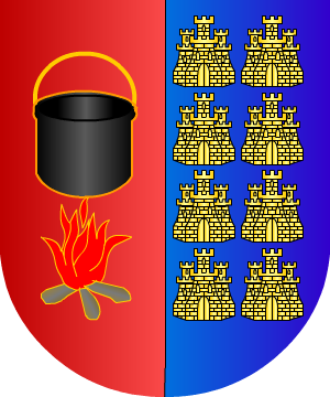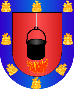 Linaje asturiano, de Villaviciosa. Armas 1.- De gules, una caldera de sable sobre llamas de fuego viroladas de oro, colgada por su asa de una cuerda de plata moviente del jefe. Bordura de azur con ocho castillos de oro. 2.- Otros traen: Escudo partido, 1º de gules, una caldera de sable sobre llamas de fuego; y 2º de azur, ocho castillos de oro puestos en dos palos. |