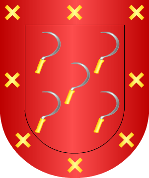 Familia de Hoces, desdendiente de Don Ramiro de Foces, rico-hombre de Aragón, que acompañó al frente de su huestes al Santo Rey Don Fernando III en la conquista de Córdoba (1236); señores del castillo de la Albaida. El condado de Hornachuelos fué concedido por el Rey Don Felipe IV en 21 de julio de 1640 á Don Alonso Antonio de Hoces, hijo de D. Lope de Hoces, caballero del hábito de Santiago, de los Supremos Consejos de la Guerra y de Indias, general de la flota, almirante general y gobernador de la armada del mar Oceáno, y de doña María Aldonza de Hoces y Haro, su mujer y sobrina. Pedro de Hoces, señor de la Albaida, embajador en Inglaterra; Don Alonso de Hoces, señor de la Albaida, veinticuatro de Córdoba, caballerizo de la Reina; tres comendarores de Villafranca en la órden de Santiago (Don Pedro de Hoces de Aguayo, segundo conde de Hornachuelos; Don Lope de Hoces y Hoces, tercer conde, ministro del Supremo Consejo de Indias y Junta de Guerra; y Don Pedro de Hoces y Manuel de Lando, cuarto conde marido que fue de doña Teresa Rosa de Paniagua, hija de Don Antonio de Paniagua Loaisa de Zuñiga, primer marqués de Santa Cruz de Paniagua en 1681, maestre de campo general de Extremadura y Cataluña, general de Artillería gobernador de Cádiz y capitán general de Orán, y del Supremo Consejo de Guerra) Armas De gules cinco hoces de plata con mango de oro, puestas en sotuer; bordura de gules cargada de ocho sotueres de oro; que es de Hoces. Bibliografía Anales de la Nobleza de España Por cortesía de D. José E. Sánchez y Flores, capDNA desde San Antonio en Texas, Estados Unidos. |