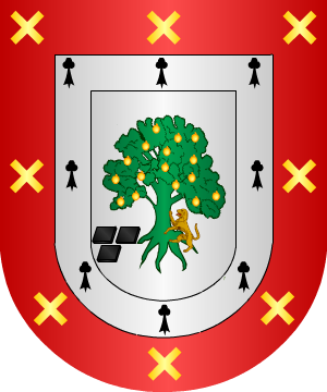 y tres al lado del tronco, enfrente del perro; orla de plata y ocho armiños
