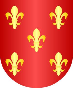 En campo de gules, dos mandobles, de plata, encabados de oro y puestos en faja.