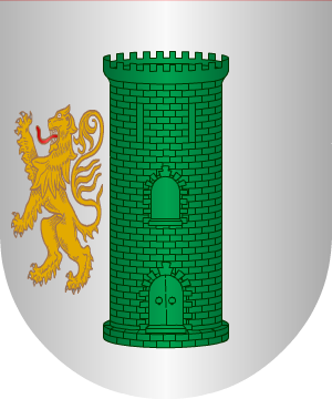 6.- Otros Marcos, traen: En campo de plata, una torre, de sinople, adiestrada de un león, de su color.