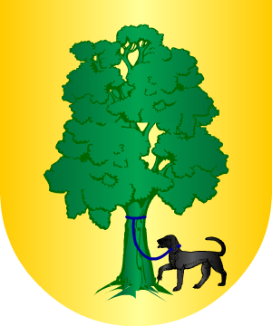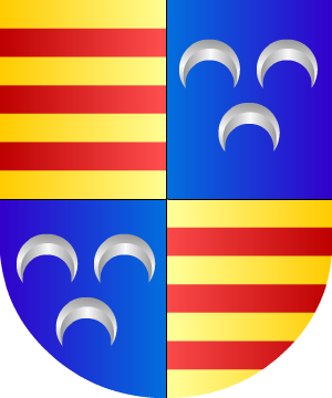 Cuartelado, 1º y 4º de oro, una mano empuñando una mata de sinople; y 2º y 3º de azur, una flor de lis de plata.