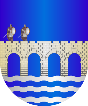 2.- Otros traen: En campo gules, un castillo, de oro, acostado de dos leones rampantes del mismo metal; bordura de oro, con ocho eslabones de cadena, de azur.