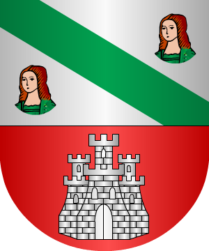 51.- Una rama originaria de Castilla, radicada en el siglo XVI en Cenicientos, pasado en el siglo XIX a Cadalso de los Vidrios y Madrid, según Cadenas, traen: Escudo cortado: 1º, en plata, una banda, de sinople, acompañada de una cabeza de doncella en lo alto y en lo bajo, y 2º, en gules, un castillo, de plata.