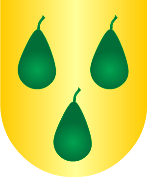 21.- Otros traen: En campo de oro, un peral, de sinople, frutado de oro y sumado de un brazo armado, de azur, con una espada en la mano; bordura de gules, con ocho aspas, de oro.