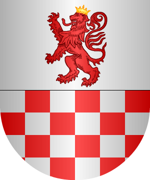 Por timbre lleva este escudo una celada de oro, sumada de medio cuerpo de león del mismo metal, coronado, linguado y armado de gules, y por adornos exteriores trece banderas salientes de los flancos, cargada cada bandera de un creciente de plata ranversado. Y este lema, en una cinta, saliendo de las fauces del medio león: "Ecce beatificamus eos qui sustinuerunt".