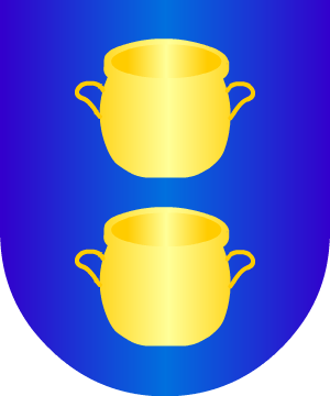 Los de los pueblos de Arnuero y Cayón, en la montaña de Santander: Partido: 1º de gules, con un castillo de plata, y 2º, de oro, con una caldera de sable sumada de un pendón de gules. Bordura de gules con ocho sotueres oro.