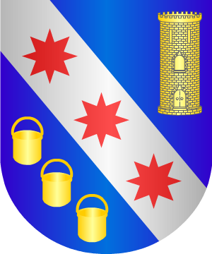 Los Sánchez de Aguilar, traen: D'azur, à la bande d'argent, chargé de trois étoiles de gueules et accompagné en chef d'une tour d'or et en pointe de trois chaudières du même, rangées en bande. (ref.: RIETSTAP). |