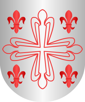 1.- Según Vicente de Cadenas, traen: En campo de plata, una banda, de gules, atravesada, de una espada, de oro, encabada, de sable.
