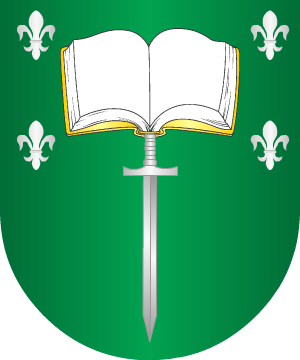 3.- Los Sagarra de Barcelona: En campo de sinople, un libro abierto, las cubiertas de oro, una espada de plata, con la guarnición alta, que pende por medio del libro, y éste cantonado de cuatro flores de lis de plata.