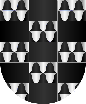 6.- Otros traen: Escudo partido: 1º, de plata, una cruz hueca floreteada de gules, acompañada de cuatro roeles de lo mismo; y 2º, de sinople, un castillo, de piedra con una escala de sable a su diestra arrimada a sus muros, y sumado a su homenaje un puerco de oro.