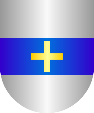 18.- Los originarios de Herrera de Pisuerga (Palencia) y radicados en Palencia, Valladolid y León, según Vicente de Cadenas, usan: En campo de plata, una faja de azur, cargada de una cruz, de oro.