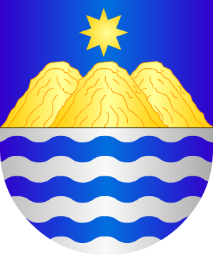 54*.- En el barrio de la iglesia, antiguamente llamado Barrio Sala, en el lugar de Igollo, del valle de Camargo (Cantabria), constan: Tres fajas de escaques y bordura de lo mismo.