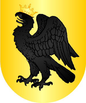 3.- Los radicados en Valencia, Madrid y León, según Vicente de Cadenas, usan: Escudo cuartelado: 1º, en campo de oro, cuatro palos, de gules; 2º, en campo de azur, sobre peñas, de oro, una cabeza de moro con turbante de gules, surmontada de una bandera, fajada de oro y gules; 3º, en campo de sinople, una montaña, de plata, sumada de un castillo de oro, y 4º, en campo de azur, una flor hojada, de oro, surmontada de un sol, de oro, a la diestra y de una estrella, de plata, a la siniestra.