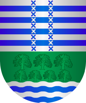 El Cronista y Rey de Armas Vicente de Cadenas recoge este apellido en su Repertorio de Blasones de la Comunidad Hispánica. En plata, tres bandas, de gules. Jefe de plata, con tres rosas, de gules, puestas en faja. Información de estos linajes por cortesía de blasonari.net |