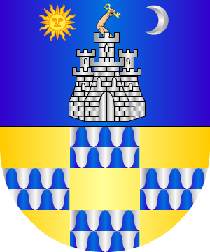 Palentino. Armas Escudo cortado, 1º de azur, un castillo de plata y saliendo de su homenaje, un brazo que porta en su mano una llave de oro, acompañado de un sol de oro a su diestra y de una media luna de plata a su siniestra; y 2º jaquelado de cinco piezas de oro y cuatro veradas de plata y azur. (Véase Vásquez) |