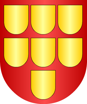 29.- Otros, del Rosellón: De gules, siete escudetes de oro en dos fajas y uno en punta.