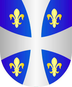 6.- Otros traen: En campo de azur, una cruz paté, de plata, acompañada de cuatro lises, de oro.