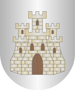 6.- Otros: En campo de plata, un castillo, de su color, almenado y mazonado de sable.