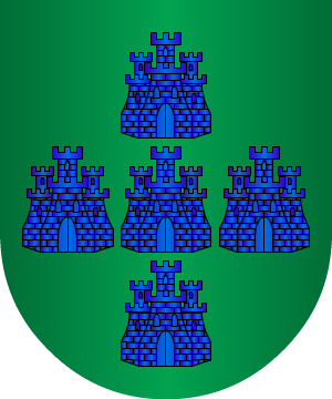 3.- Otros: En campo de sinople, cinco castillos, de azur, puestos en cruz.