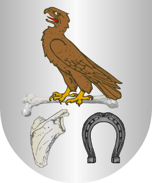 4.- Otros: En campo de plata, cinco águilas, de sable, puestas en aspa.