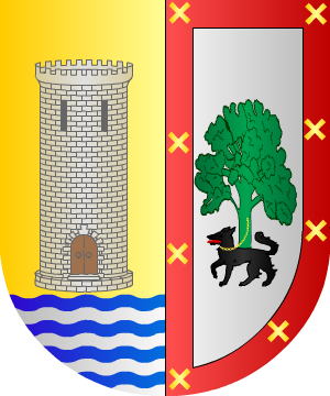En campo de oro, un águila de sable. Bordura endentada de sable.