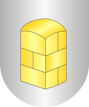 1.- En campo de plata, una montaña, de sinople, sumada de una cruz de calvario, de sable.