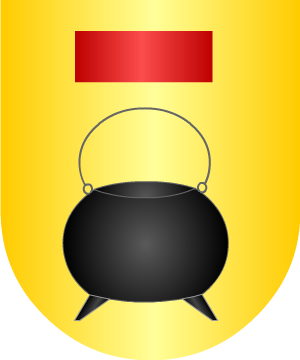 Psayla, traen: En campo de gules, un castillo de oro, abjurado de azur. Bordura