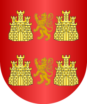 de gules, un castillo de oro, aclarado de azur, y 2º y 3º, en campo