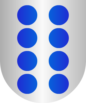 con las ocho arandelas de lanza, de azur. 7.- Los de Galicia, usan: Escudo partido: 1º, en campo de plata, un león de gules, rampante, por concesión del Rey Don Enrique IV de Castilla, y 2º, en campo de gules, una torre sobre un puente, que bañan ondas de agua de azur y plata; bordura general de oro, con ocho arandelas de azur. 8.- La casa de Durango, ostentaba: Escudo partido: 1º, en campo de plata, un león de gules, rampante, por concesión del Rey Don Enrique IV de Castilla, y 2º, en campo de gules, un castillo sobre un puente, que bañan ondas de agua de azur y plata; bordura general de oro, con ocho arandelas de azur. 9.- Los de León, descendientes de los Sarmiento por línea femenina, según Diego de Soto y Aguilar, traen: Escudo partido: 1º, en campo de plata, un león rampante de oro, y 2º, en campo de gules, sobre ondas de mar de azur y plata, un puente de plata sumado de un castillo, también de plata; bordura de oro con ocho roeles de azur. 10.- Los de Úbeda, según Alonso Fernández de Madrid, usaron: Escudo partido: 1º, de plata, con un león rampante, de púrpura; 2º, de gules, con una torre, de plata, con puente de hierro, puesta sobre un puente de tres arcos, y debajo del puente, sin agua, una rama de romero; bordura de oro, con ocho arandelas de lanza, de azur. 11.- Otros Aranda, traen: En campo de plata, un león rampante de gules, que son las armas reales que concedió Don Enrique IV al Jurado Fernando de Aranda. Este mismo escudo usaron los Aranda de Aragón, Navarra y Andalucía. 12.- Los Aranda de Cabra (Córdoba) traen: En campo de oro, una banda de gules. 13.- Buegas dice que hubo también Aranda que ostentaron estas otras armas: En campo de oro, una banda de gules, cargada de tres flores de lis de azur y acompañada en lo alto, de un león rampante, de gules, y en lo bajo, de un castillo de azur. 14.- En el puente de Anuncibay, de Orozco, que mandó construir Ignacio de Aranda y Novia de Salcedo, Marqués de Falces, en 1741, consta este otro escudo: Escudo partido: 1º, una torre con bandera en las almenas, puesta sobre un puente, y a su vera un romero, y 2º, cortado: primero, un león rampante, y segundo, un brazo armado con una bandera hacia abajo; bordura general con ocho arandelas. 15.- Los originarios de Asturias, radicados en Oviedo, León y Madrid, según Vicente de Cadenas, traen: En campo de gules, un guerrero de plata, con un estandarte en la diestra y una maza, de guerra, en la siniestra. 16.- Miguel de Salazar, para la casa de Aranda de Duero (Burgos), las describe de esta forma: En gules, una torre de plata, cercada de un muro del mismo metal, aclarada de azur, sobre un puente de tres arcos, y debajo de él una mata de romero, de sinople, sobre ondas de agua de azur y plata. Bordura de oro, con ocho hierros de lanza, de azur. 17.- Otros: Escudo mantelado: 1º, en azur, una estrella de oro; 2º, una cruz de gules, como la de Portugal; 3º o manteladura, en azur, un mundo con un rey de oro y un castillo de plata. Bordura general de gules, con ocho aspas de oro. 18.- Otros Aranda establecidos en Limbourg (Países Bajos) usan: En campo de azur, una torre de tres cuerpos de plata, aclarado de gules. Bordura de oro, con ocho aspas de gules. 19.- Otros Aranda o Arandas radicados en Brujas (Flandes-Bélgica) usaron: Escudo cortado: 1º, a su vez partido: primero, en campo de azur, una estrella de ocho puntas de plata, y segundo, en oro, una cruz flordelisada de gules, y 2º, en campo de plata, un mundo de azur, alado de lo mismo, cintado de oro, y superado de una cruz de lo mismo. Información de estos linajes complementada por cortesía de blasonari.net |
