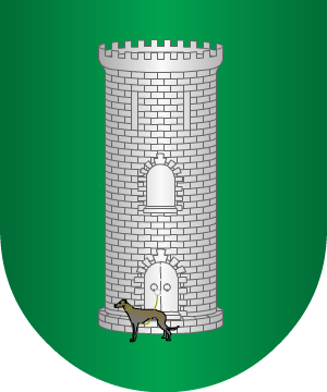 En campo de gules, una banda de oro, engolada en cabezas de dragantes, de sinople,