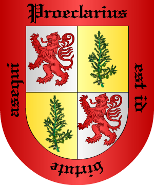 de azur con rejado de oro, y 2°, en rojo, tres estrellas en triángulo". 9.- Otros de Cataluña, traen: Una b minúscula (se ignoran los esmaltes). 10.- Los de Mallorca traen: En campo de gules, cinco bombas de artillería de sable. 11.- Los de Valencia: Escudo cortado: 1º, partido, primero, en campo de gules, tres estrellas de plata, y segundo, en campo de gules, tres bezantes de plata, y 2º, en campo de azur, ondas de plata y azur en punta. 12.- Otros: En campo de oro, un árbol, de sinople, arrancado, y una estrella, de plata. 13.- Otros Valaguer: Escudo cuartelado: 1° y 3°, en campo de plata, un monte de sinople, y 2° y 4°, en campo de azur, un castillo de oro, con un guerrero de sable, a su puerta. Información complementada por cortesía de blasonari.net Bibliografía Diccionario Hispanoamericano de Heráldica, Onomástica y Genealogía de Endika de Mogrobejo. El Solar Catalán, Valenciano y Balear de Alberto y Arturo García Carraffa. Repertorio de Blasones de la Comunidad Hispánica de Vicente de Cadenas. Blasonarlo de la Consanguinidad Ibérica de Vicente de Cadenas. Nobiliario Español, Diccionario de Apellidos de Julio de Atienza. Diccionario Heráldico y Nobiliario de los Reinos de España de Fernando González-Doria. Enciclopedia Heráldica y Genealógica Hispano-Americana de Alberto y Arturo García Carraffa. Heráldica Catalana de Francesc d'A. Ferrer i Vives. Nobiliario Español de Julio de Atienza. Linajes nobles de España de Juan José Vilar y Psayla. Trovas de Mossen Jaime Febrer. Prelados, Abades Mitrados, Dignidades Capitulares y Caballeros de las Ordenes Militares habilitados por el Brazo eclesiástico en las Cortes del Principado de Cataluña de Francisco José Morales. Próceres habilitados en las Cortes del Principado de Cataluña, siglo XVII (1599-1713) de Francisco José Morales Roca. Adarga catalana de Francisco Xavier de Garma y Durán. Nobiliario de los Reinos y Señoríos de España de Francisco Piferrer. El Fogatge de 1553 de Josep Iglésies. La población de Aragón según el fogaje de 1495 de Antonio Serrano Montalvo. Els Fundadors del Regne de València de Enric Guinot. |