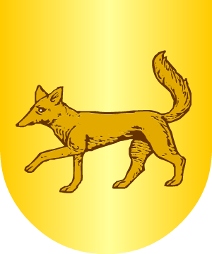 de cuatro lobos andantes de sable, linguados y vilenados de gules, uno en cada