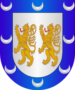 Escudo partido: 1º, de oro, con los trece roeles de azur, y 2º, de