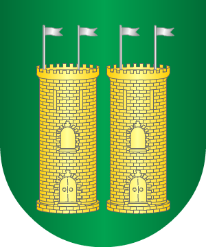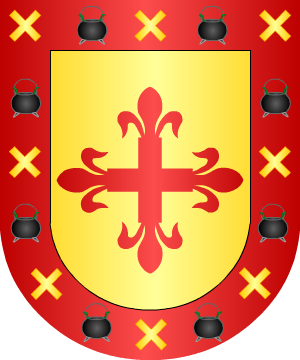 plata, una cruz de sable de hechura de Calatrava. Bordura de plata con ocho