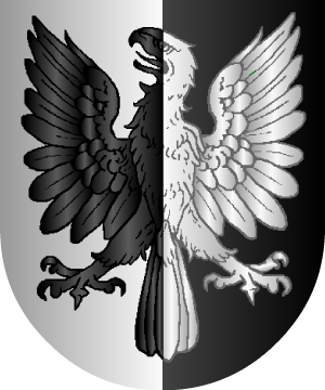 En campo de plata, partido de sable, un águila del uno al otro.