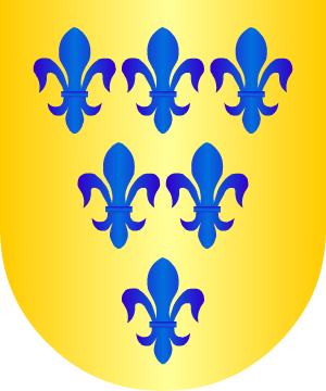 dos y una. 2.- Otros traen las flores de lis puestas dos, dos y dos, en palo. 3.- Otros: Escudo partido: en el primer cuartel con las armas
