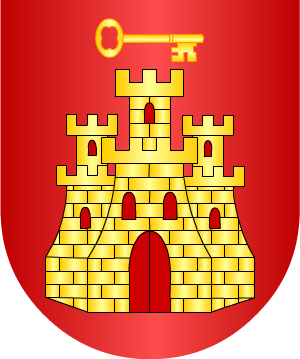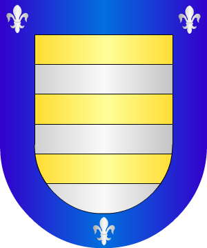 Armas Trae las de Pimentel: Escudo cuartelado, 1º y 4º de oro, tres fajas de gules; y 2º y 3º de sinople, cinco veneras de plata puestas en sotuer. Bordura componada de Castilla y León de dieciséis piezas. (Ref.: GARCIA CARRAFA). |