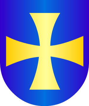 plata, surmontada de una cruz y acostada de cuatro flores de lis, dos a cada